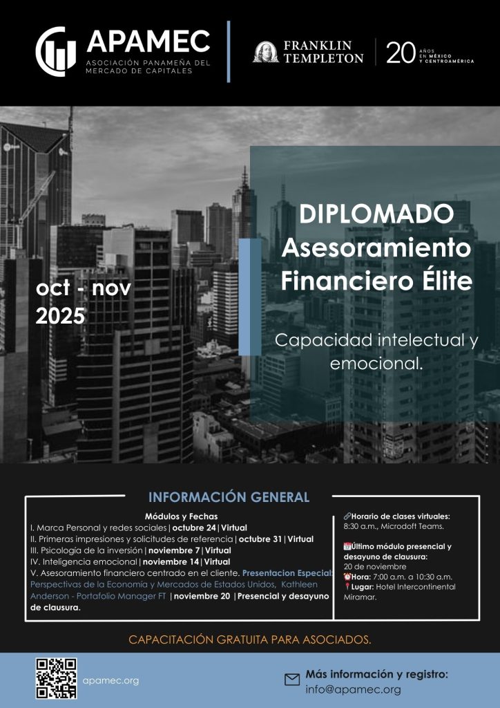 Como parte de su compromiso con la formación continua y el fortalecimiento profesional de sus miembros, la Asociación Panameña del Mercado de Capitales (APAMEC), en alianza con Franklin Templeton | The Academy, dio inicio al Diplomado Asesoramiento Financiero Élite, un programa diseñado para potenciar las competencias de los profesionales del sector financiero.