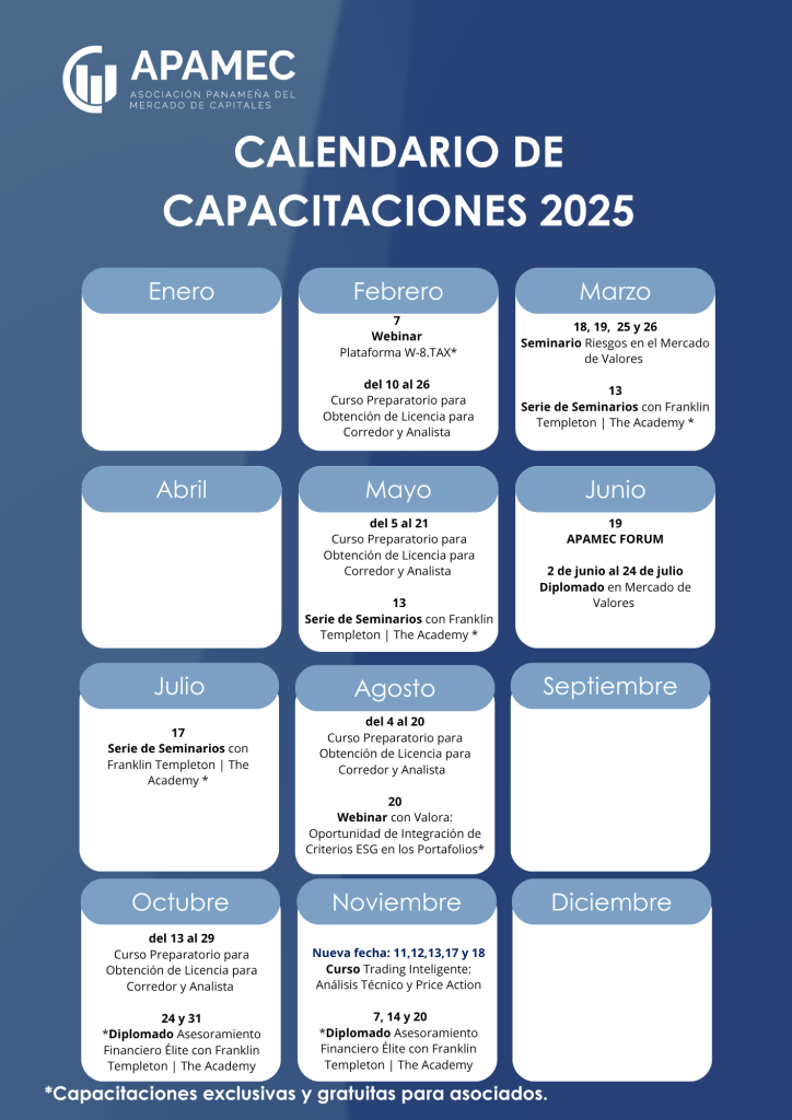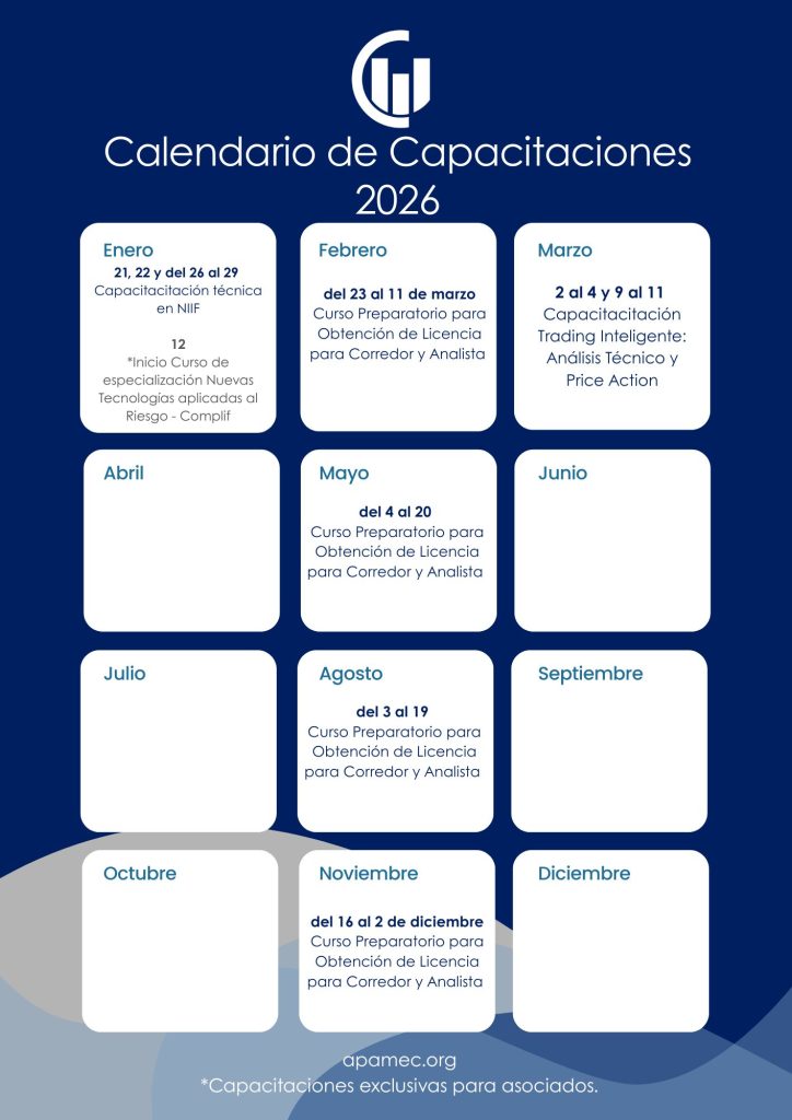 💡 Importante: Este calendario se estará actualizando a medida que se confirmen nuevas capacitaciones, ¡así que mantente atento a nuestras novedades!